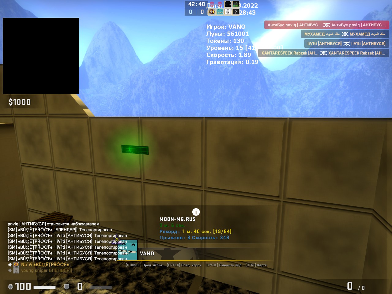 он телепортировал игрока за тестурки 5 раз подряд и 1 раз 2-го игрока